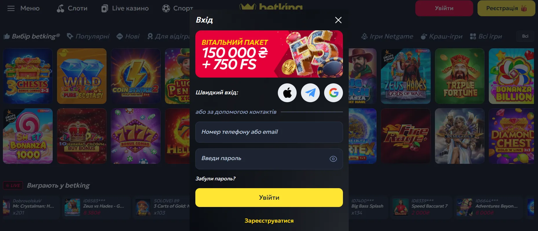 Після успішного входу відкривається доступ до профілю, історії транзакцій, бонусів, програми лояльності та всього ігрового каталогу.
